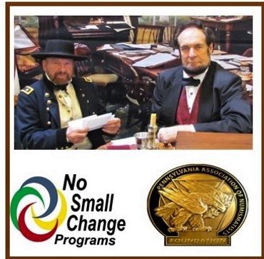 Our Non Profit's Founders are Coin Collectors and History Buffs, Storytellers, Researchers and Co-Presenters of the No Small Change -- Money Matters of the Civil War Programs, 2018-2025. MORE Programs planned for 2025! For your Groups, Libraries, Historical Societies and Coin Shows...